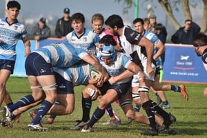 Luis Cetraro Facundo Garibay planta la plataforma del maul, con el apoyo de Joaquín Schierano y José Canuto, ante la firme oposición entrerriana.