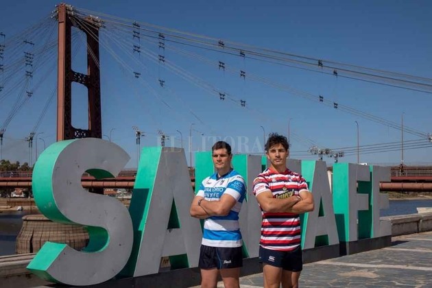 Franco Parego José Dogliani y Guillermo Botta (h), capitanes de CRAI y Santa Fe Rugby Club, respectivamente, en la emblemática Costanera Oeste de nuestra ciudad.