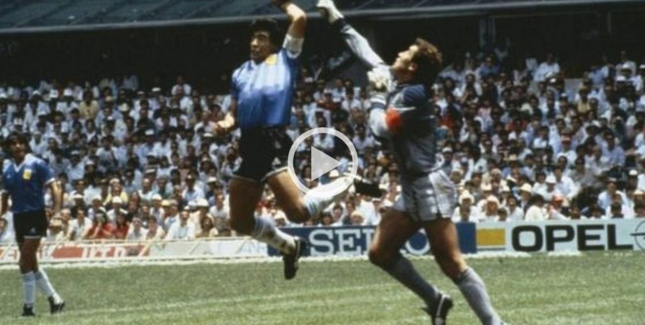 Aquel 22 de junio, se cumplían 6 minutos del segundo tiempo, cuando Maradona elevó su mano al cielo y puso el 1 a 0 para la Argentina, de manera ilegítima, pero que es recordada como "La Mano de Dios".
