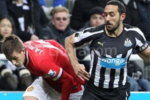 El argentino Jonás Gutiérrez regresó hoy a la actividad futbolística, luego de casi un año de ausencia, y vistió la camiseta del Newcastle, que perdió sobre la hora ante Manchester United (0-1), en partido de la 28va. fecha de la Premier League del fútbol de Inglaterra.
