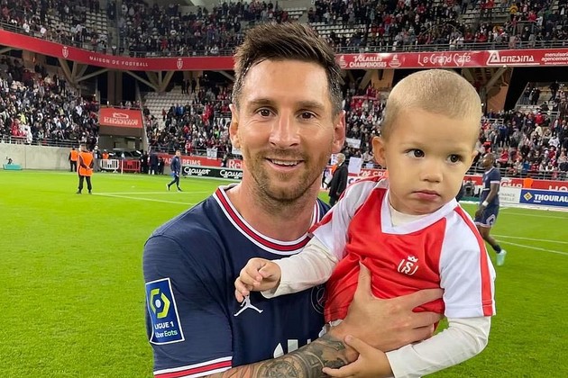 Una vez finalizado el partido, el arquero de Reims, el serbio Predrag Rajkovic, se acercó a Messi con su hijo en brazos y le solicitó una fotografía.