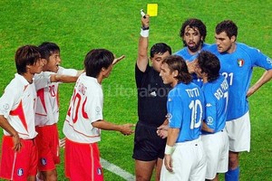 Además de a la FIFA, acusa en concreto al ecuatoriano Byron Moreno, quien arbitró el encuentro entre la selección italiana y la coreana, de detener la carrera de la Azzurra contra Corea del Sur "con un conjunto de tarjetas rojas, faltas no vistas y goles anulados" en un partido que terminó con un 1-2.