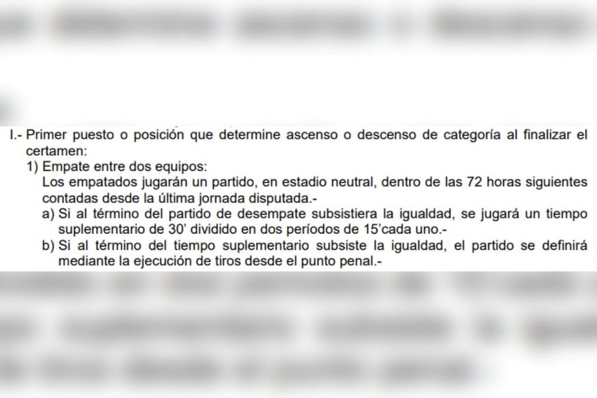 “Si la posición no quedara definida luego de realizados los partidos a que se refiere el punto anterior, aquella lo será en favor del equipo que registrase la mayor cantidad de puntos o la mayor diferencia de goles o la mayor cantidad de goles a favor, computándose exclusivamente los partidos jugados entre los empatados en el respectivo certamen. Este procedimiento se repetirá cuantas veces sea necesario”.