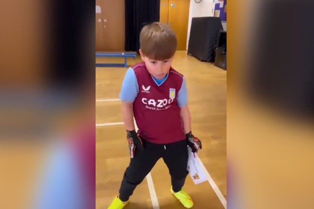 Es que Santi, con guantes en sus manos y la casaca de Aston Villa, el equipo donde juega el marplatense, se mostró feliz por la obtención de un diploma en su escuelita de fútbol en Inglaterra. Y lo hizo con un bailecito que copia los movimientos de su papá.