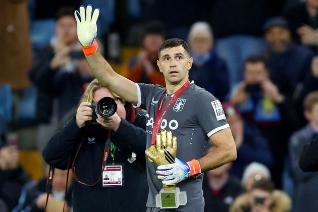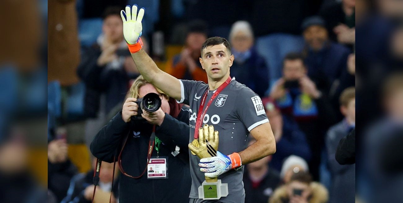 El reencuentro con los hinchas ingleses se dio en el Villa Park, allí donde una multitud lo aplaudió en el calentamiento previo al inicio del partido vs. Wolverhampton y luego lo ovacionó cuando ingresó con el trofeo ganado en Qatar -fue elegido el mejor arquero de la Copa- y la medalla de campeón del mundo colgada.