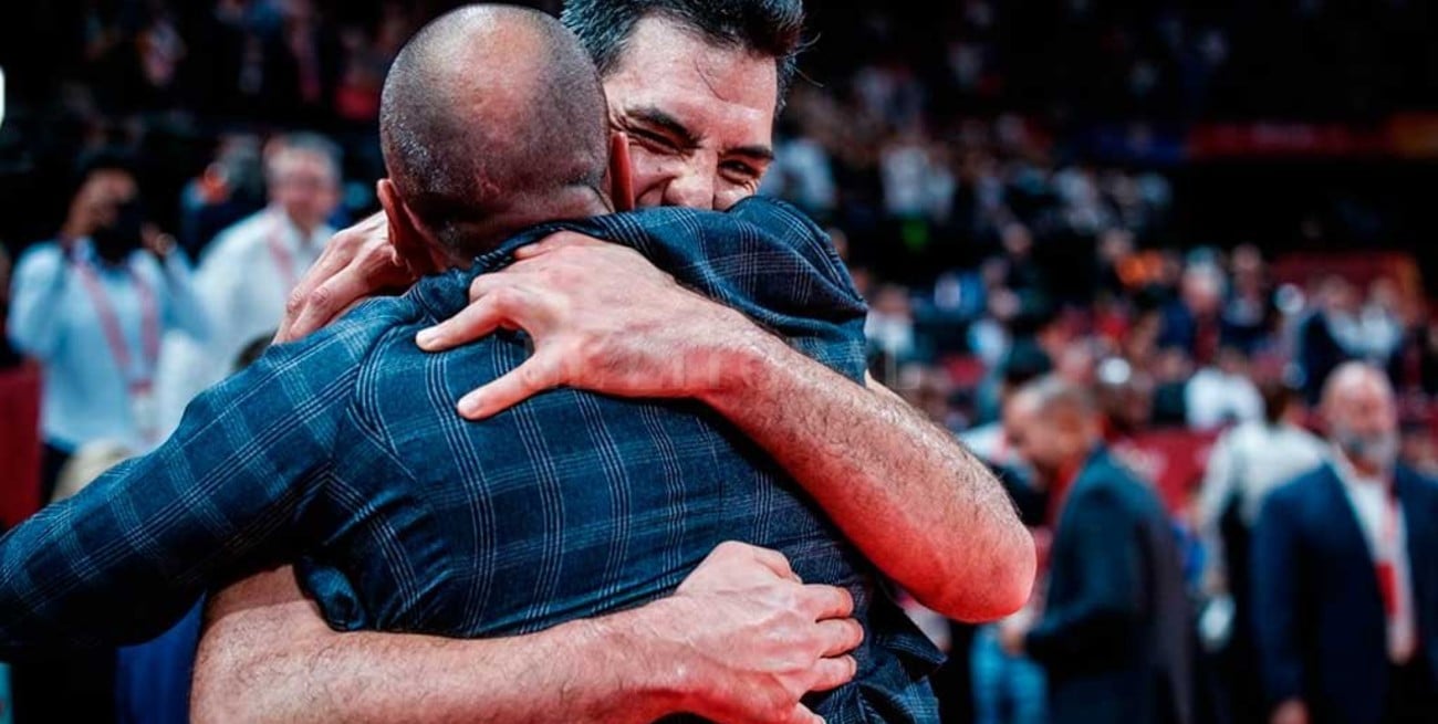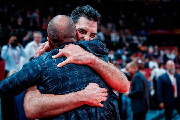 Con la emoción a flor de piel, el emblema de la Generación Dorada, festejó el triunfo argentino y se dio un enorme abrazo con el capitán y figura del partido Luis Scola.