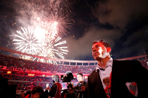 Juan Fernando Quintero, uno de los ídolos de River Plate y figura de su ciclo, leyó una sentidas palabras para el Muñeco: “Gracias por el respeto del manto sagrado y gracias eternas por tu legado. Gracias por cada proeza y gracias por vivir y jugar con grandeza. Gracias desde la San Martín a Belgrano, la Sívori y la Centenario. Y gracias por meterte contra Gremio en el vestuario. Gracias por los 14 títulos, por la gloria, por el inolvidable capítulo de nuestra historia. Gracias por el 9 de diciembre y gracias por esta emoción que vivirá para siempre. Gracias por esta alegría de ganarle a Boca y salir campeón”.