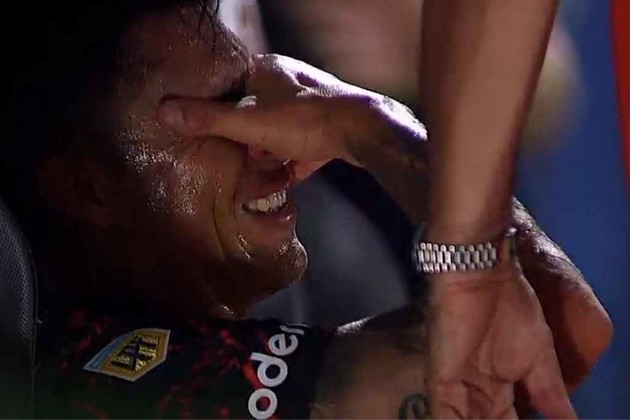 Sentado en el banco de suplentes, el capitán riverplatense lloró desconsoladamente por una lesión que podría demandarle al menos tres meses de recuperación.