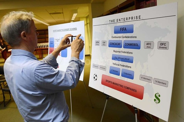 El Departamento de Justicia de EEUU presentó 47 acusaciones por "organización mafiosa, fraude masivo y blanqueo de dinero, entre otros". Los acusados estarían implicados en la obtención de sobornos por más de 150 millones de dólares, a lo largo de 24 años por la corrupción del fútbol, por "lucrativos derechos de comercialización en los medios y mercadotecnia en los torneos internacionales".