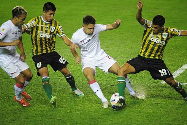 En el estadio Florencio Sola, el conjunto visitante se adelantó en la pizarra con los tantos marcados por Francisco Apaolaza (Pt. 19m.) y el uruguayo Agustín Rogel (Pt. 22m.).