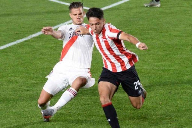 Estudiantes contó con la más clara en los pies de Federico González, que exigió al arquero Franco Armani con un tiro cruzado, pero terminó ofuscado el primer tiempo por la expulsión del marcador central Fernando Tobio.