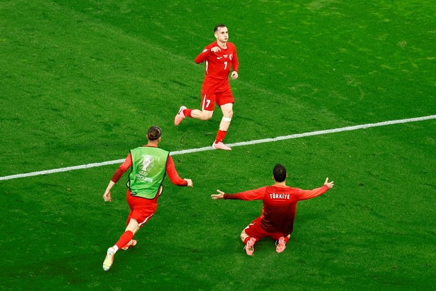 En la última jugada del partido, el arquero georgiano Giorgi Mamardashvili fue al área de Turquía en busca del empate y Kerem Akturkoglu de contraataque marcó el 3 a 1 con el arco vacío, de manera similar al gol de Gonzalo Pity Martínez en la final de la Libertadores donde River venció a Boca 3 a 1 en Madrid.