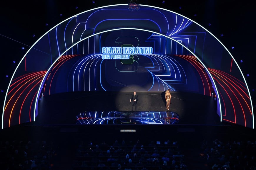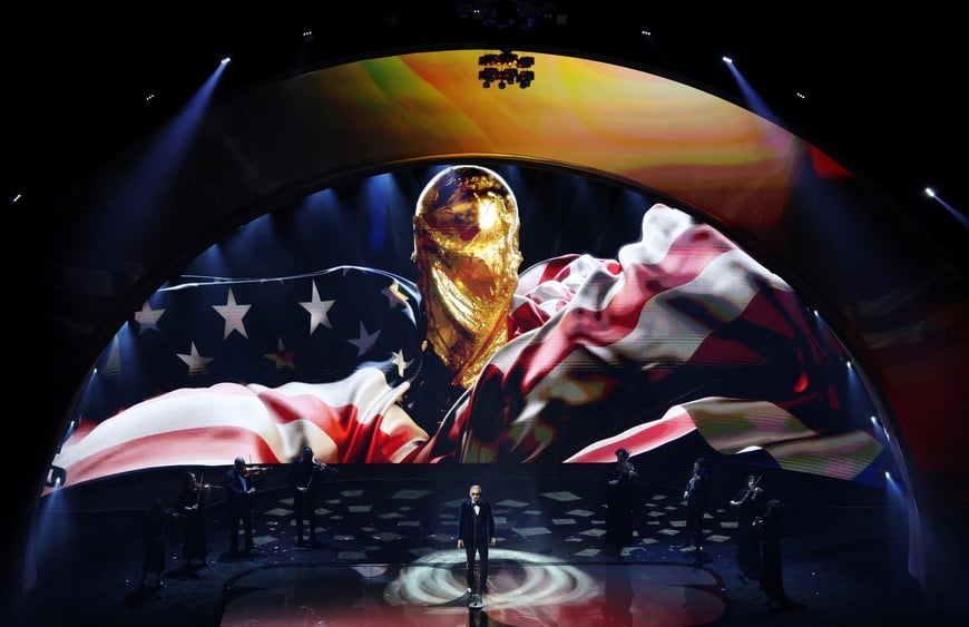 El evento se lleva a cabo en el Centro John F. Kennedy en Washington D.C. En el escenario, la FIFA desplegó un show con artistas de renombre como Andrea Bocelli, que hace algunos días estuvo en Argentina, y Robbie Williams, además de figuras de otros deportes como Tom Brady y Shaquille O'Neal.