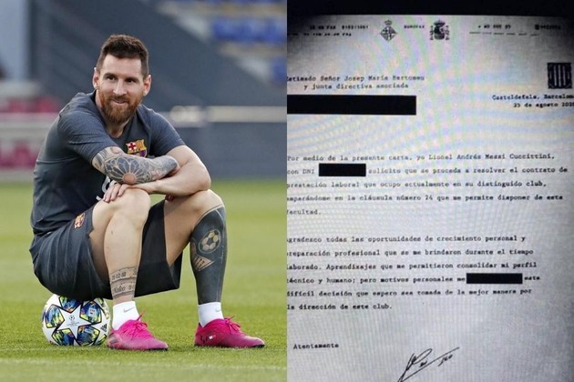 A horas de la noticia, la cadena ESPN publicó una imagen del documento que Messi envió al club. “Solicito que se proceda a resolver el contrato de prestación laboral que ocupo actualmente en su distinguido club, amparándose en la cláusula numero 24 que se me permite disponer de esta facultad”, señala el burofax que está firmado por el rosarino de 33 años.