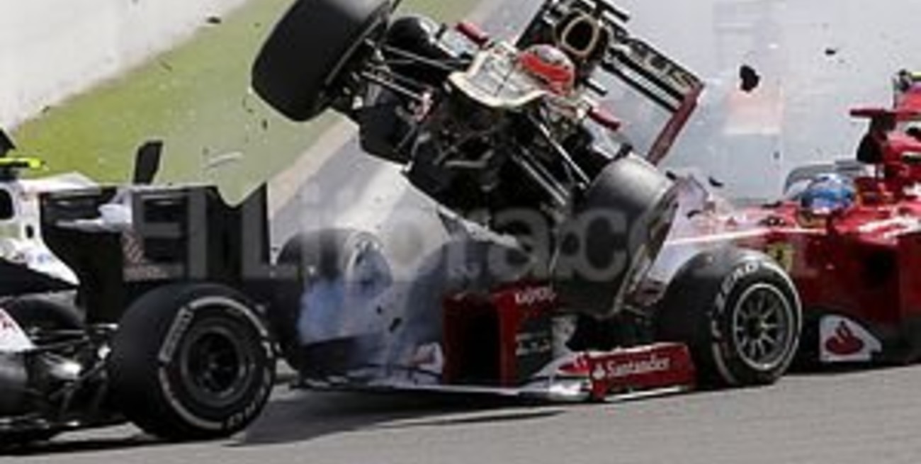 El británico perdió el control de su bólido y embistió por detrás el del galo, que salió volando y cayó encima del Ferrari de Alonso justo cuando se disponía a tomar la primera curva del circuito de Spa-Francorchamps.