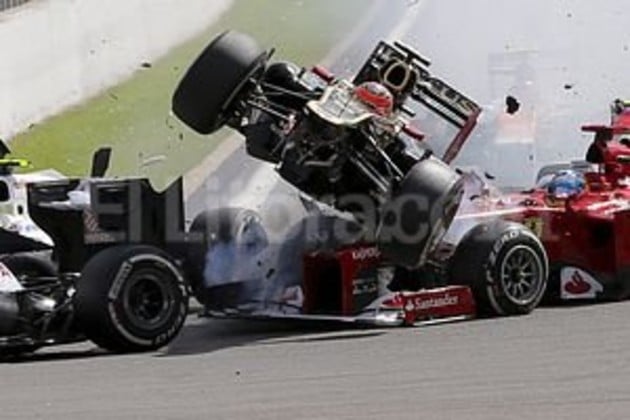 El accidente fue causado por el Lotus del francés Romain Grosjean, que también tuvo que abandonar, al chocar con el lateral del McLaren de Hamilton.