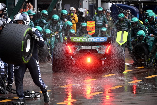 Luego de cuatro vueltas de seguridad a la pista, los coches retornaron a los boxes a la espera de una mejoría del clima en un escenario repleto de público.