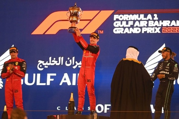 El tercer puesto en Bahréin lo "heredó" el séptuple campeón mundial, Lewis Hamilton (Mercedes), beneficiado por el desplome de un Red Bull que vio abandonar al neerlandés Max Verstappen y al mexicano Sergio "Checo" Pérez en las vueltas finales.
