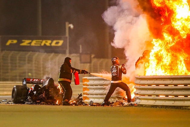La mano izquierda de Grosjean sigue vendada desde el espectacular accidente que protagonizó cuando su coche se prendió fuego por completo luego de haber impactado contra otro vehículo en la primera curva del circuito de Bahrein.