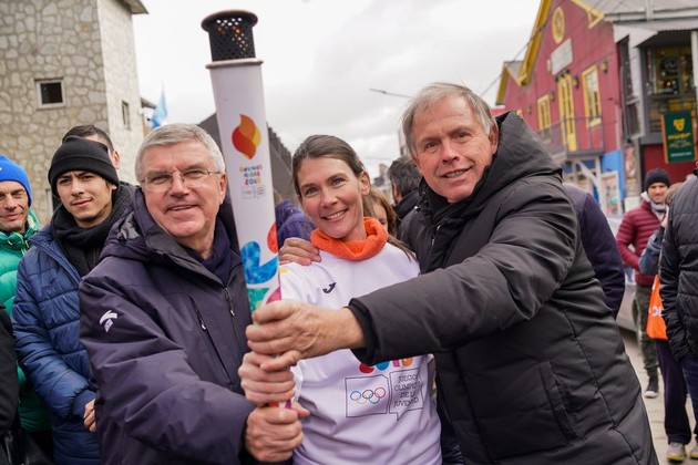 El presidente del Comité Olímpico Internacional, Thomas Bach, y el presidente del Comité Organizador Buenos Aires 2018, Gerardo Werthein, llevaron este domingo el espíritu Olímpico a Ushuaia para portar el fuego sagrado en el relevo del fin del mundo de la antorcha Olímpica de la Juventud.