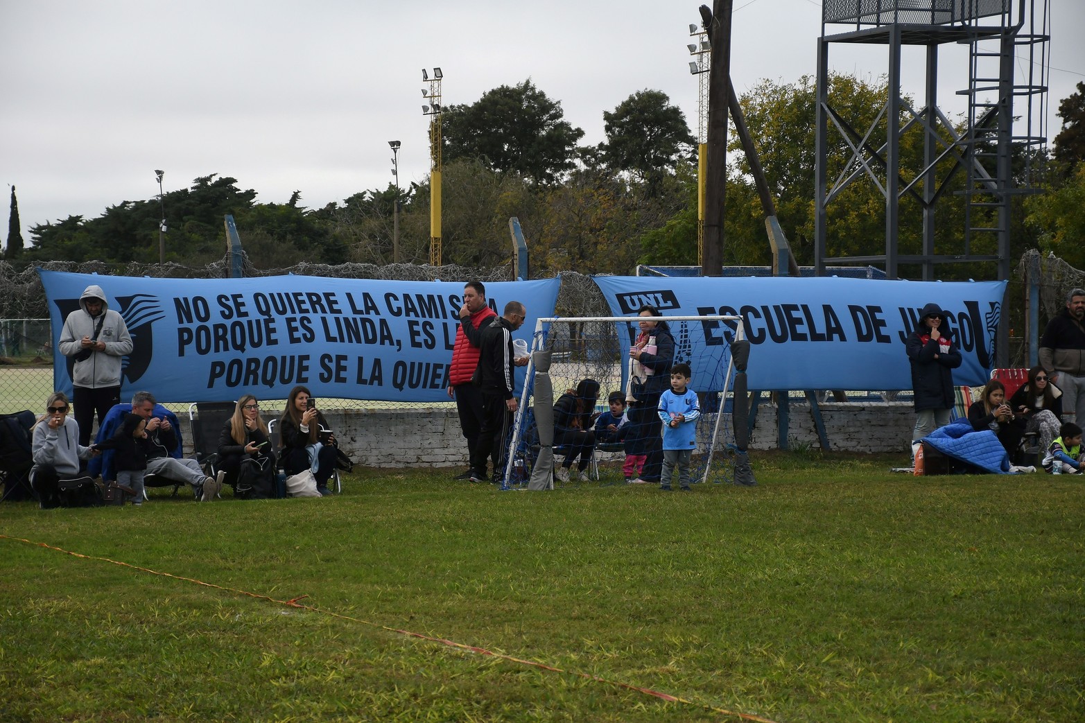 19 / 19 La frase "No me grites, alentame" es un recordatorio de la importancia de mantener una actitud positiva y alentadora en el entorno deportivo. Muchos niños se sienten abrumados por la presión y las críticas constantes de sus padres, que a menudo se manifiestan en forma de gritos desde las tribunas o pegados al tejido.. Foto: Guillermo Di Salvatore