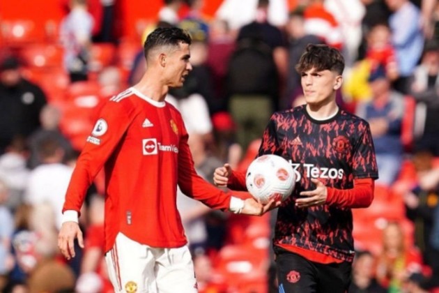 Garnacho publicó una foto en su Instagram personal donde se lo ve junto al portugués y con la pelota que el ex Real Madrid le regaló tras su triplete. El pie de la imagen lo define a Cristiano como “el mejor de toda la historia”.
