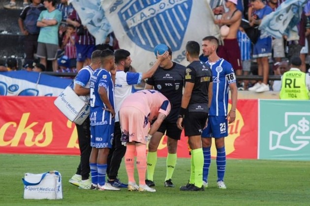 El partido había sido suspendido el 4 de febrero cuando, antes del inicio del segundo tiempo, el juez de línea Diego Martín fue golpeado por un proyectil que bajó desde la tribuna popular local: le produjo un profundo corte en su frente y un estado de conmoción.