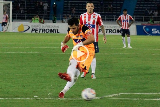 Junior de Barranquillas, el próximo rival de Colón en la Copa Sudamericana, ganó este fin de semana en el campeonato colombiano con un gol de tiro libre de su arquero.