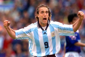 Paralelamente, su éxito con la camiseta celeste y blanca se prolongaba. Dos goles en la final ante México (2-1) para conquistar la Copa América ‘93 en Ecuador (último título oficial del seleccionado mayor), otros cuatro en el Mundial de los EE.UU. en 1994, cinco más en Francia 1998 y un último en Corea Japón 2002.
