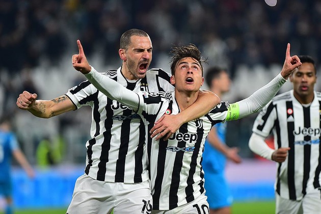 Reuters Soccer Football - Champions League - Group H - Juventus v Zenit Saint Petersburg - Allianz Stadium, Turin, Italy - November 2, 2021 Juventus' Paulo Dybala celebrates scoring their second goal with Leonardo Bonucci REUTERS/Massimo Pinca