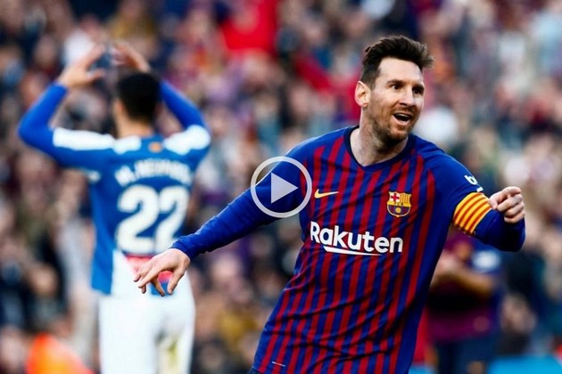 Lionel Messi, autor de un doblete, permitió al Barcelona (1º) domar (2-0) a su vecino, el Espanyol (14º), para dar otro paso hacia el título de Liga, este sábado en el Camp Nou en la 29ª jornada.
