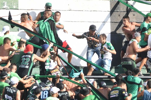 Télam 16/02/2020, Buenos Aires: Incidentes violentos en la tribuna de los simpatizantes de Chicago, durante el encuentro en el que reciben a Temperley.
