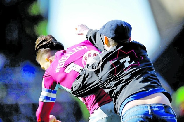 Grealish estaba en el área del Birmingham City cuando un hombre invadió el campo de juego para asestarle un puñetazo por la espalda cuando sólo se habían disputado 10 minutos de juego. El capitán del Aston Villa se fue al suelo, mientras sus compañeros Glenn Whelan y Tammy Abraham acudieron en su defensa.