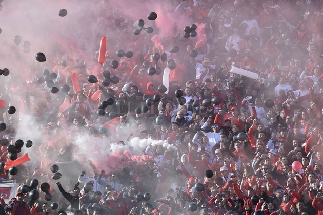 "¡Tomala vos, dámela a mí, el que no salta, murió en Madrid!", cantaron eufóricos los 70 mil espectadores mientras los globos se esparcieron en el aire y algunos se instalaron en el césped del Monumental en pleno partido.