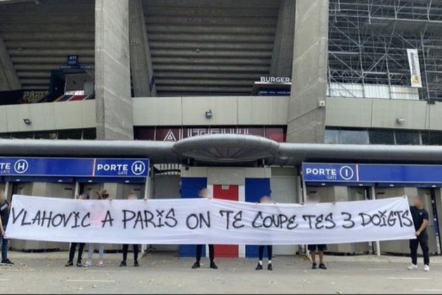 "En París te cortaremos los tres dedos", reza la bandera blanca que desplegaron algunos fanáticos en las inmediaciones del Parque de los Príncipes, justo cuando Vlahovic, también en la mira de Chelsea, tenía casi todo acordado para salir de Juventus en una operación valuada en 80 millones de euros, aproximadamente.