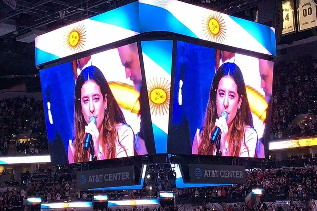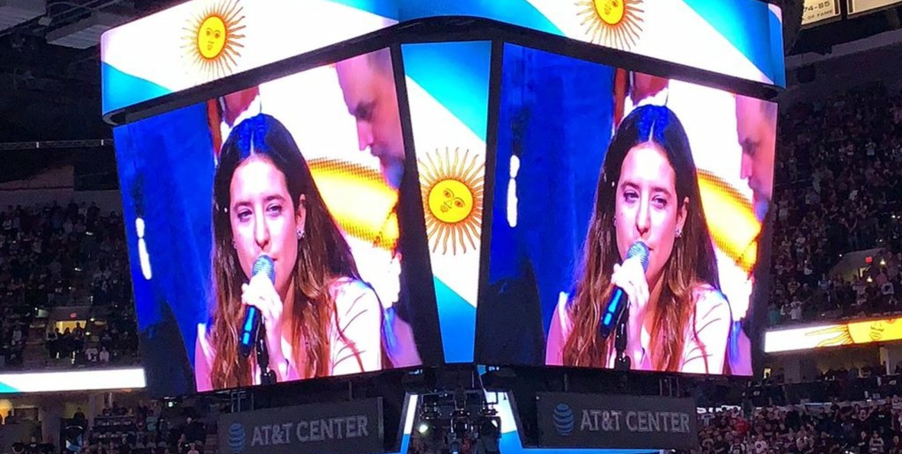 Michelle Leclercq, una cantante argentina que emigró a Estados Unidos cuando tenía 19 años, fue la encargada de entonar la canción patria en el AT&T Center de San Antonio.