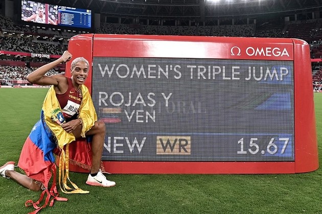En la fosa del Estadio Olímpico de Tokio, Rojas -de 25 años y nacida en Caracas- saltó 15,67 metros en su sexto y último intento para quedarse con la presea dorada.