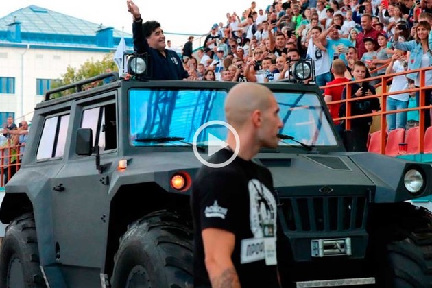Diego Armando Maradona sigue sumando capítulos a su vida. Ahora, desembarcó en Bielorrusia para ser presidente del equipo Dynamo Brest. Su llegada al país fue toda una revolución. Lo recibieron como toda una estrella y además, le obsequiaron diversos objetos.