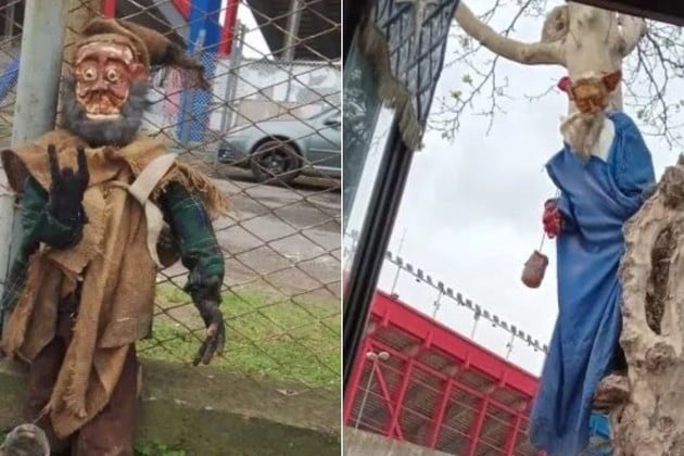 A tres días de un nuevo clásico entre el "Ciclón" y el "Globo", en las afueras del Estadio Pedro Bidegain aparecieron extraños muñecos con trajes, que se utilizan para la brujería.