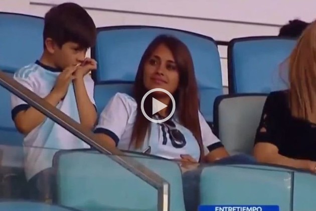 Después de que Lionel Messi cantara por primera vez el himno con la camiseta del seleccionado, su hijo mayor, Thiago, besó su camiseta y se golpeó el pecho.