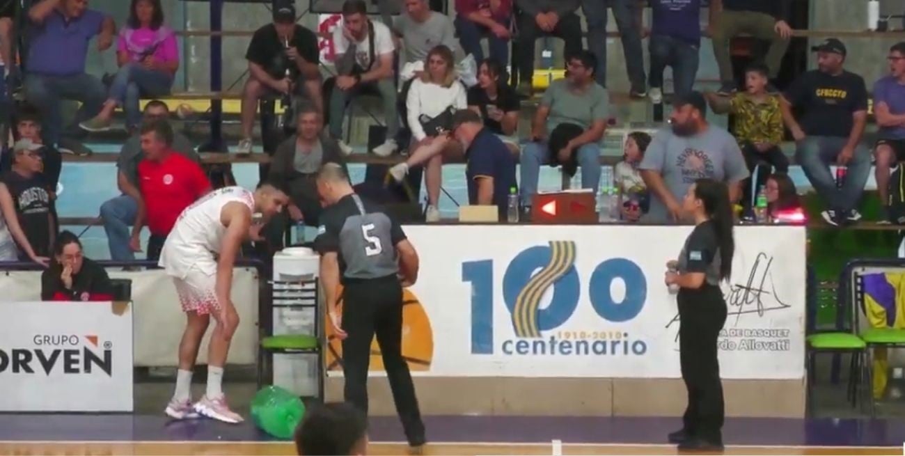 El partido ya había comenzado con algo de roce, charlado y accidentado por la lesión de Juan Cruz Rinaldi, aunque se venía desarrollando con normalidad. El primer cuarto había finalizado con Centenario arriba por 22-20, que luego ganaría también el segundo para estirar la ventaja e irse al descanso largo con las cosas 45-36.