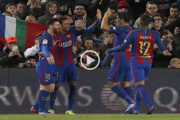 Los tantos del conjunto catalán los anotaron el uruguayo Luis Suárez (3m. PT), el francés Layvin Kurzawa en contra (44m. PT), Messi (5m. ST), de penal, el brasileño Neymar (42m. ST y 45m. ST, de penal) y el español Sergi Roberto (50m. ST); el gol de los parisinos lo marcó el uruguayo Edinson Cavani (17m. ST).