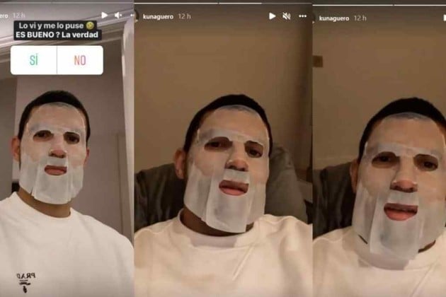 En una de sus últimas historias, el Kun se mostró con el rostro tapado por la mascarilla que generalmente se aplica para rehidratar la piel, reducir arrugas y potenciar la luminosidad; y lanzó una frase que luego convertiría en encuesta: “Lo vi y me lo puse ¿Es bueno? La verdad, sí o no”.