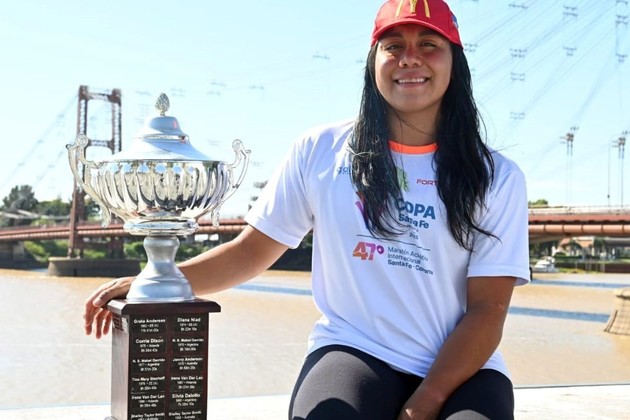 Por ese motivo, con uno de los paisajes más característicos de Santa Fe como es su puente colgante, primer punto de referencia por el que pasaron los nadadores este 2 de febrero, Mayte Puca pudo posar feliz con la Copa.