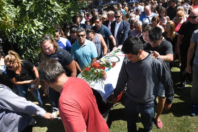 Pasadas las 10, los familiares y amigos de deportista olímpico se despidieron dentro de la capilla ardiente, y luego ocuparon los vehículos que llevaron los restos hasta el cementerio, cuyo cajón lució encima una bandera olímpica, y fue llevado por su hermano y por su ex entrenador Gustavo Osorio.
