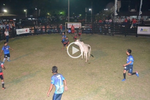 Se trata del "Fútbol Boi", una tradición paraguaya de jugar al fútbol con equipos de cinco jugadores y sumar vacas en el campo de juego.