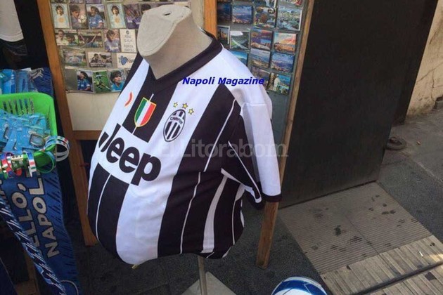 Incluso, los de Nápoles fueron más allá. En una tienda de ropa, venden la nueva camiseta de Higuaín (de la Juventus) con panza.