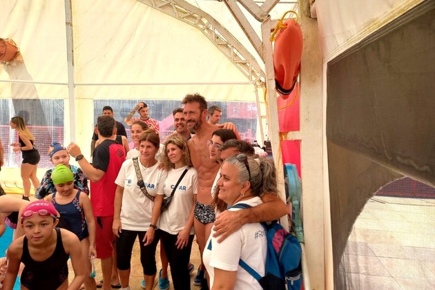 Unos 50 chicos dentro de la pileta escucharon y aprendieron de uno de los mejores nadadores argentinos de todos los tiempos. Luego fue el turno de las fotos. Pepe se sacó con todas y cada una de las personas que lo requirieron.
