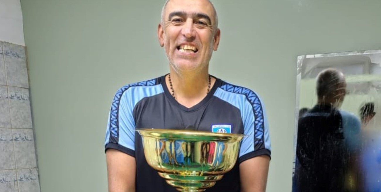 Iván Delfino junto al trofeo del Reducido.