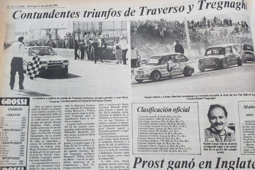 La histórica carrera de 1985 en las páginas de El Litoral. Crédito: Archivo El Litoral